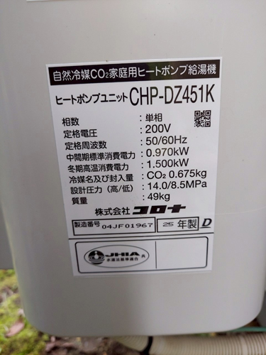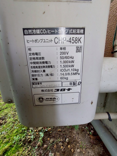 岩出市高塚 コロナ自然冷媒CO2家庭用ヒートポンプ給湯機 ヒートポンプユニットCHP-DZ451K エコキュート交換工事